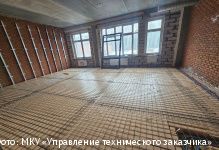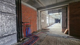 На объекте уже смонтирован каркас, возведены наружные стены и закрыта кровля. Сейчас идёт устройство фасадов, кладка перегородок, монтаж инженерных систем, установка окон и витражей. Началось оштукатуривание стен.