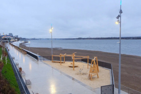 Губернатор Пермского края Дмитрий Махонин и глава Перми Эдуард Соснин провели осмотр нового участка набережной от площади Трех столетий до территории «Мотовилихинских заводов».