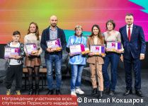 Глава Перми Эдуард Соснин наградил спортсменов, которые приняли участие во всех мероприятиях-спутниках Пермского марафона, а также команду марафона и партнеров.