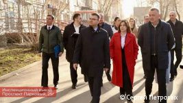 Глава Перми Эдуард Соснин провел инспекционный выезд по Парковому проспекту на участке от улицы Зои Космодемьянской до улицы Комиссара Пожарского. В начале осмотра глава города обратил внимание на состояние нижней части фасада нежилого пристроя «Уралимпекс» на Парковом проспекте, 33. Он дал поручение главе Дзержинского района Александру Стяжкину связаться с собственником для его восстановления.